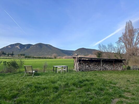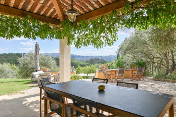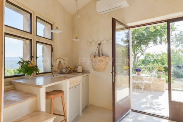 In einem charmanten Weiler in ruhiger Lage, ebenerdiges Haus von 125 m2 Wohnfläche, 4 Schlafzimmer, Garage auf einem Grundstück von 1150 m2 mit Blick auf den Luberon.